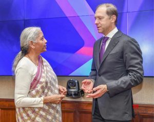 On a recent visit to New Delhi, Finance Minister Nirmala Sitharaman held discussions with a high-level Russian delegation led by Denis Manturov, the First Deputy Prime Minister of the Russian Federation. The meeting focused on a variety of topics of mutual interest, including investment, banking, and finance, highlighting the growing economic ties between India and Russia.